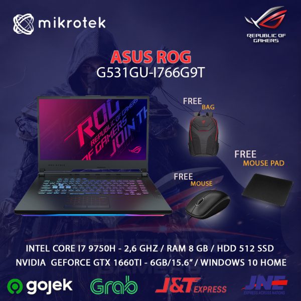 Deskripsi LAPTOP GAMING ASUS ROG G531GU-I766G9T I7-9750H 8GB 512SSD GTX1660 WIN – Black
